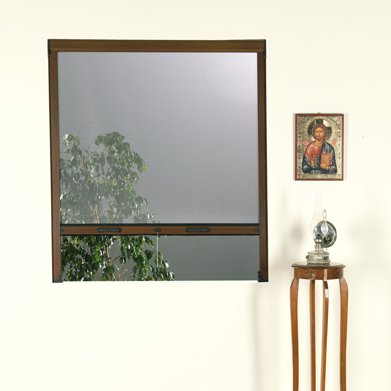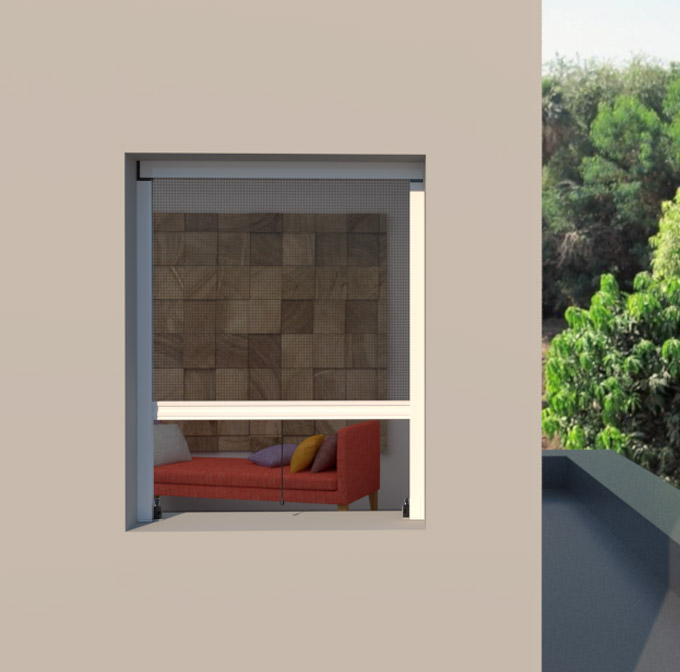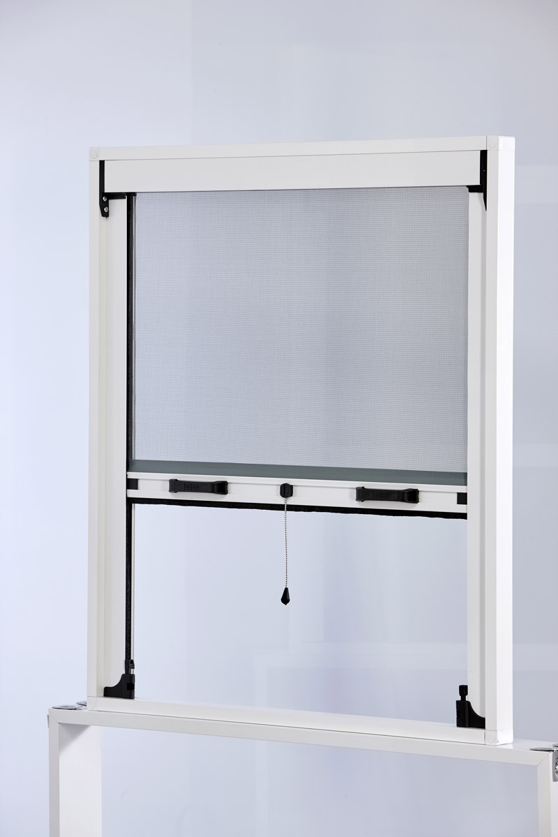 The vertical insect screen, roll-up type for windows and balcony doors with galvanized vertical return spring, weather resistant mechanism and fiberglass mesh that does not rot and burn, meets the real needs of the market.